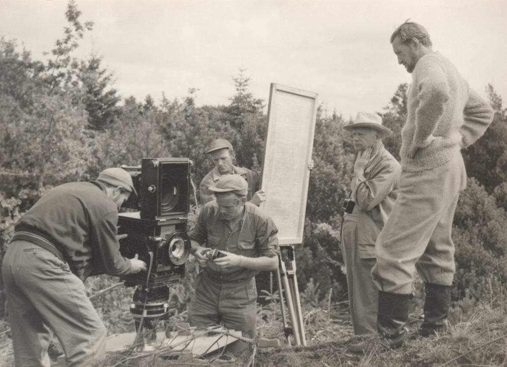 Der arbejdes løbende på, at alt kommer på plads: Både på carlthdreyer.dk samt på billedet herover hvor Dreyer og Lerdorff Rye ser til. Fotoet er fra optagelserne til 'Ordet' (Carl Th. Dreyer, DK, 1955).