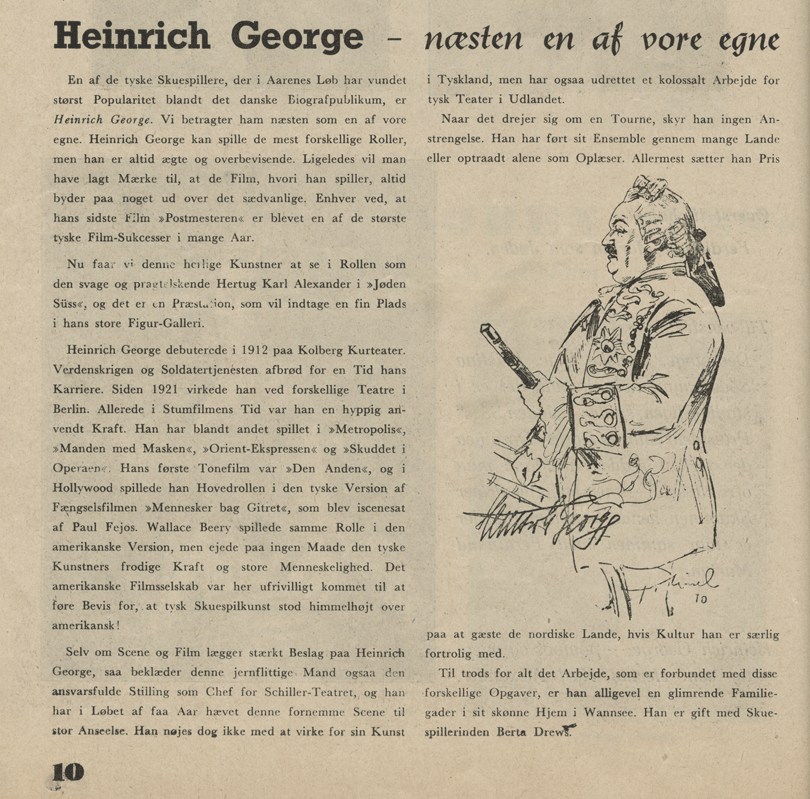 Hans ”magiske Indlevelseskunst” består i at spille filmhistoriens vel nok mest slibrige og usselt intrigerende jødekarikaturer. Selvom danske filmkritikeres modtagelse af Jøden Süss i dag med få men vigtige undtagelser fremstår som skamfuldt følgagtig, er FILMs omtale uden sidestykke i de af tidens medier, der ikke var erklæret nazistiske. Og kun én side i den sidste udgave af FILM fra januar 1941, som tæller 16 sider i alt, synger ikke tysk films pris. Den eneste formildende omstændighed er, at bladet afgår ved en brat og uvarslet død med dette nummer. Hvordan det kom så vidt og hvem der efter alt at dømme trak i trådene er emnet for denne artikel, som også ransager andre kulturtidsskrifter, der gik besætternes ærinde, og ser på dansk filmkritik i besættelsesårene generelt.