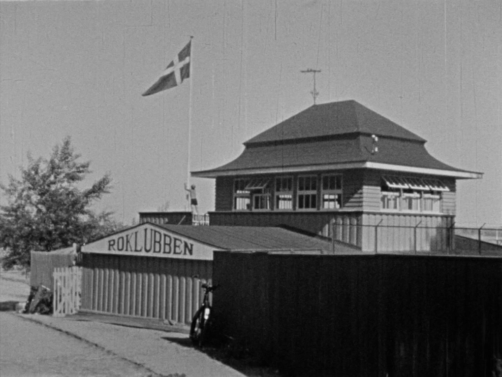 Roning og svømning i Holbæk Fjord ved Holbæk Roklubs gamle klubhus.