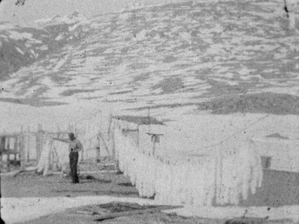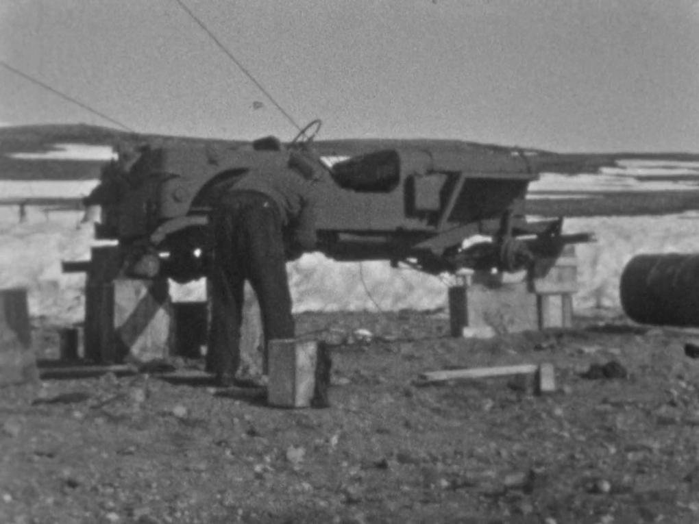 Slædepatruljens egne amatøroptagelser fra Nordøstgrønland. I klippet ser vi Slædepatruljen istandsætte deres hytter…
