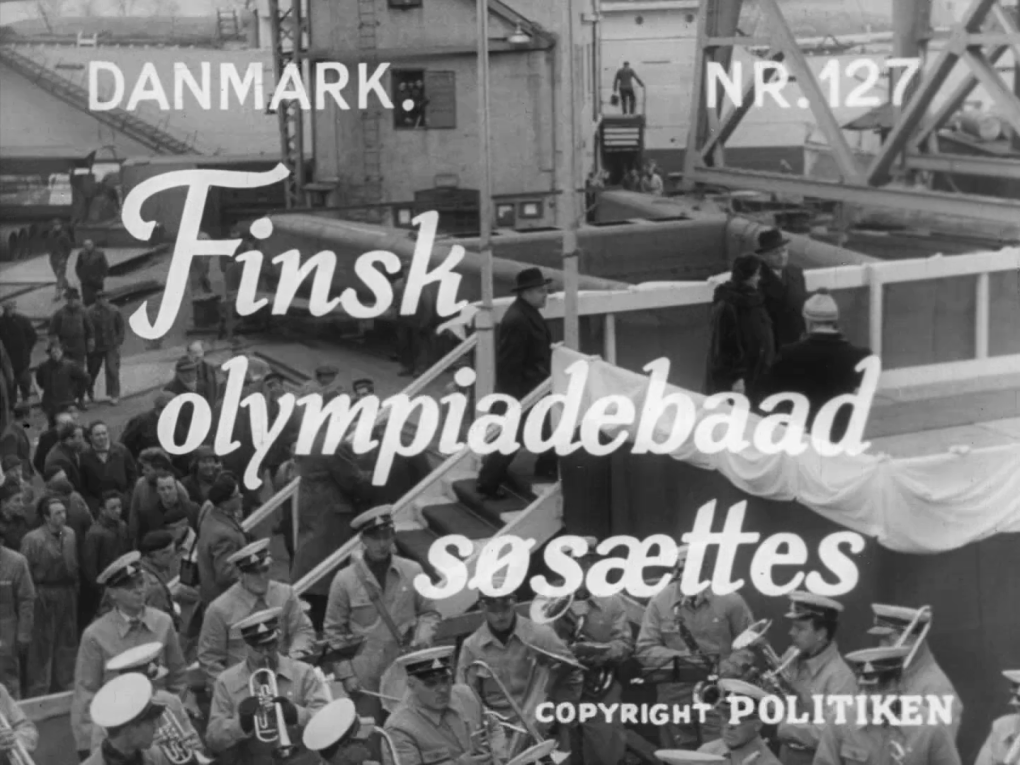 Finsk olympiadebåd søsættes i Helsingør. Fru Paasikivi, den finske præsidentfrue, døber skibet 'Aallotar', der…