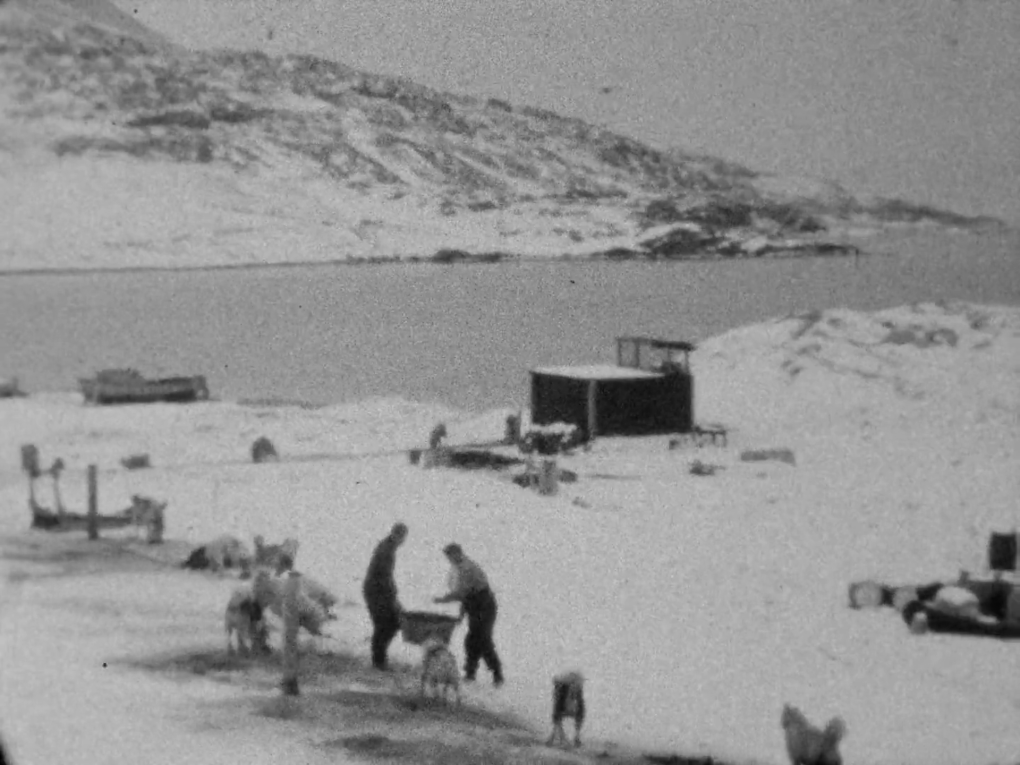 Amatøroptagelser af dagliglivet på vejrstationen ved næsset Eskimonæs på sydspidsen af Clavering Ø fra det første år…
