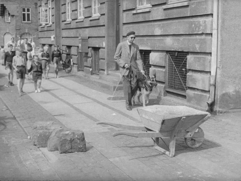 Dansk Blindesamfunds førerhunde til eksamen. Hundene fører med stor sikkerhed deres blinde ejere igennem trafikken,…