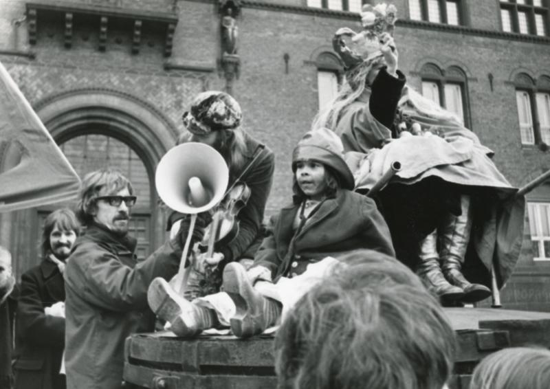 A cross section of the hippie period in Copenhagen, when the city was captured by the NATO-army from SOLVOGNEN and buzz words like LOVE REVOLUTION were in. From the army we cut to God's Children, street musicians and performers, a writer, the onlookers and members of Children Power. A commentary to an orthodox Christian way of thinking, anarchically it moves between heaven and earth.