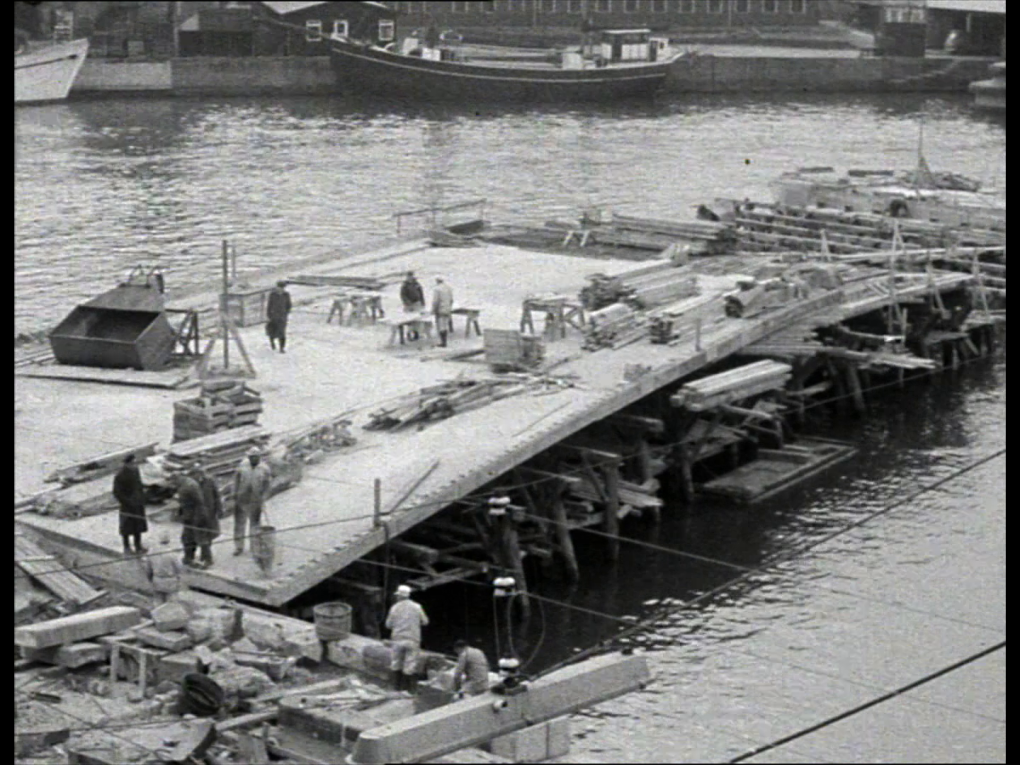 Byggeriet i 1960 af Christians IV's Bro, der fører over den yderste ende af Slotsholmskanalen.