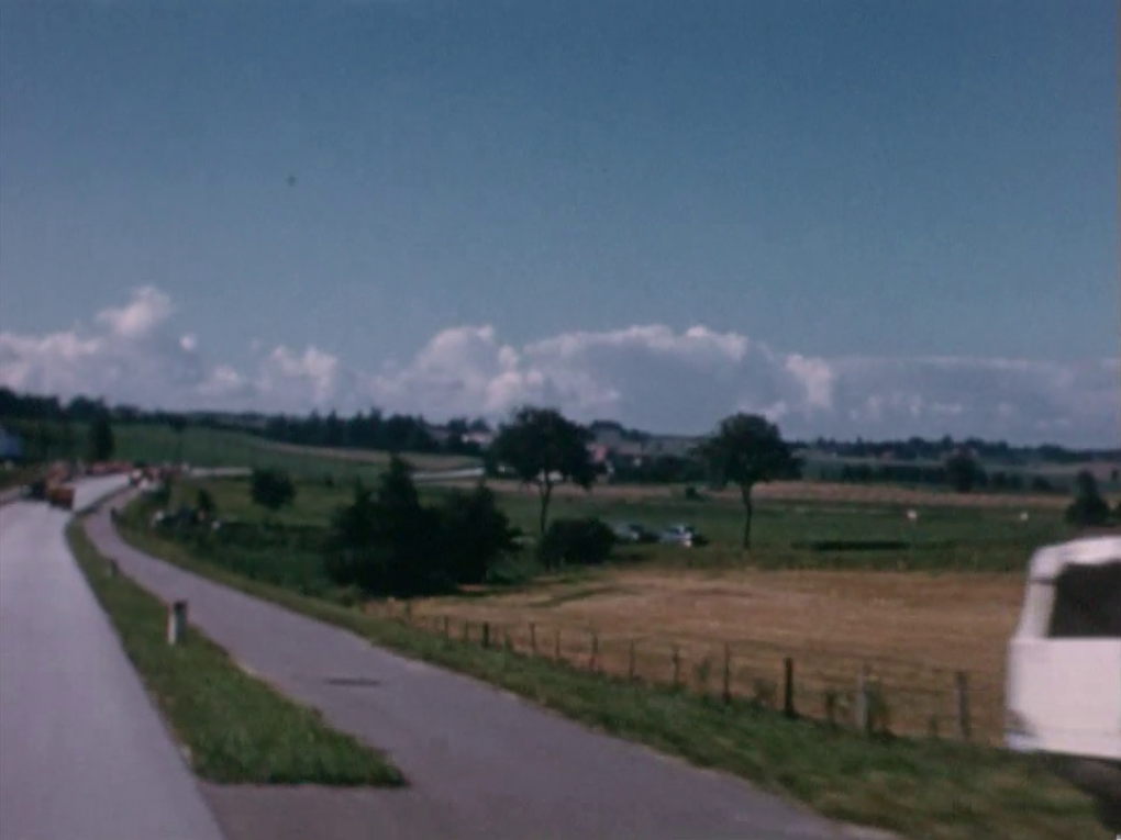 Her kører kortegen på Næstved - Rønnedevejen. I venstre side afbilledet ser man et glimt af Borup mejeri