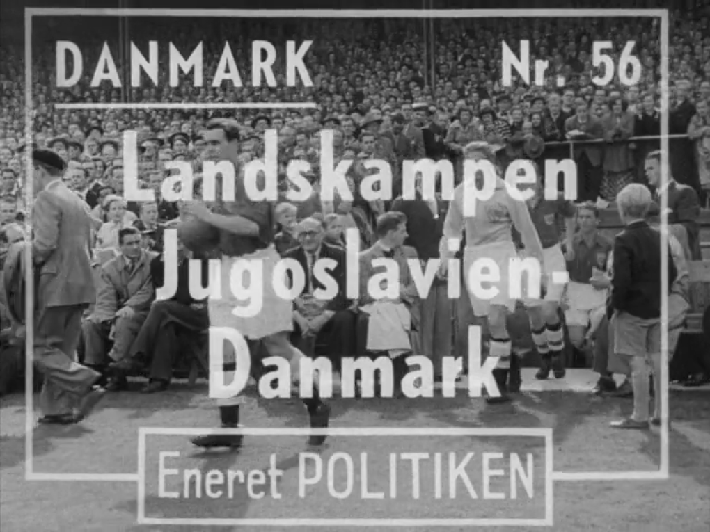 Fodboldlandskamp i Idrætsparken d. 10. september 1950 mellem Danmark og Jugoslavien. Kampen ender 1-4. Statsminister…