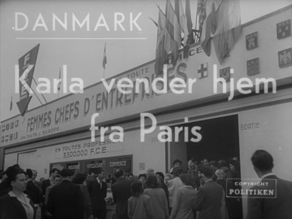 Fiskerkonen Karla Larsen i Paris. Ved hjemkomsten til Danmark i pinsen 1950 bliver hun budt velkommen af…