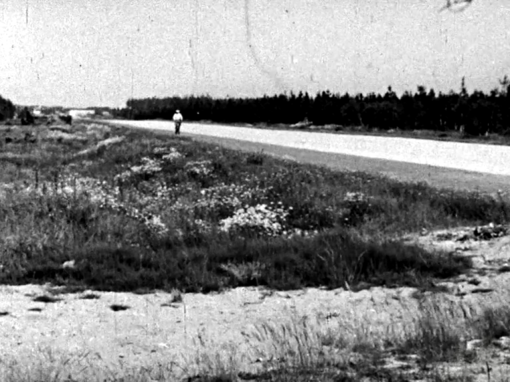 Aarhus-Grenaa Landevej er omdannet til startbane på Tirstrup Flyveplads. Her havde Jagtraadet forhen anlagt…