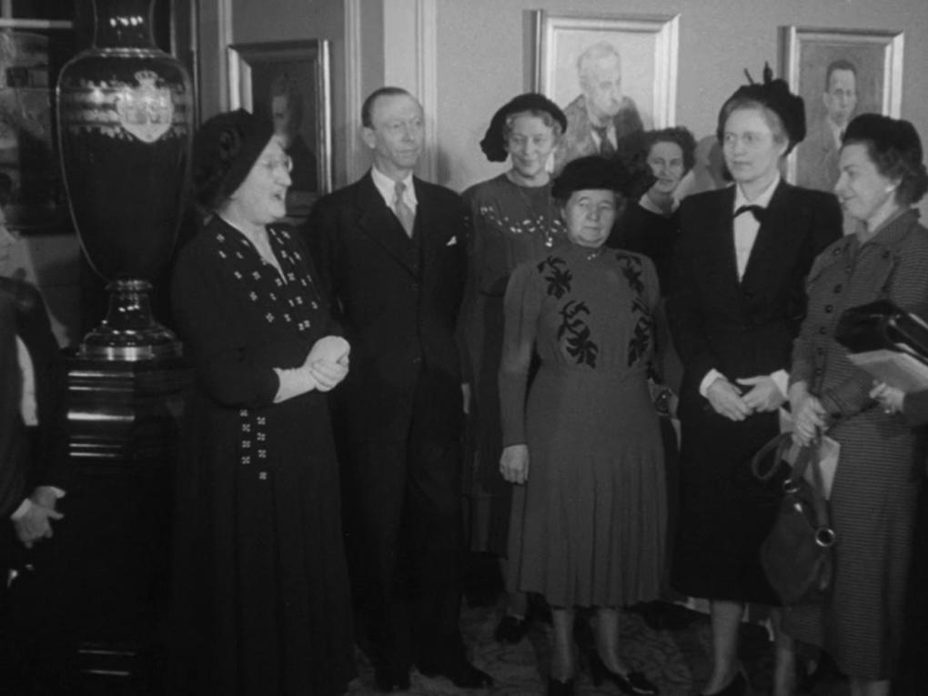 20 kvindelige journalister fra USA besøger Christiansborg d. 28. november 1949. De modtages af landstingsmedlem…